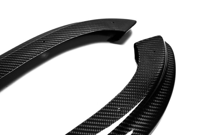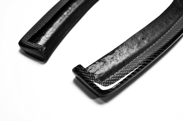 These extensions are made of strong carbon fiber (fibre), and are anti-UV clear coated to protect against paint fade. These look far better than the cheap, fibreglass counterparts available - and also fit a whole lot better than the others on the market.