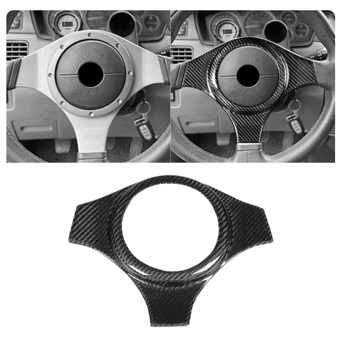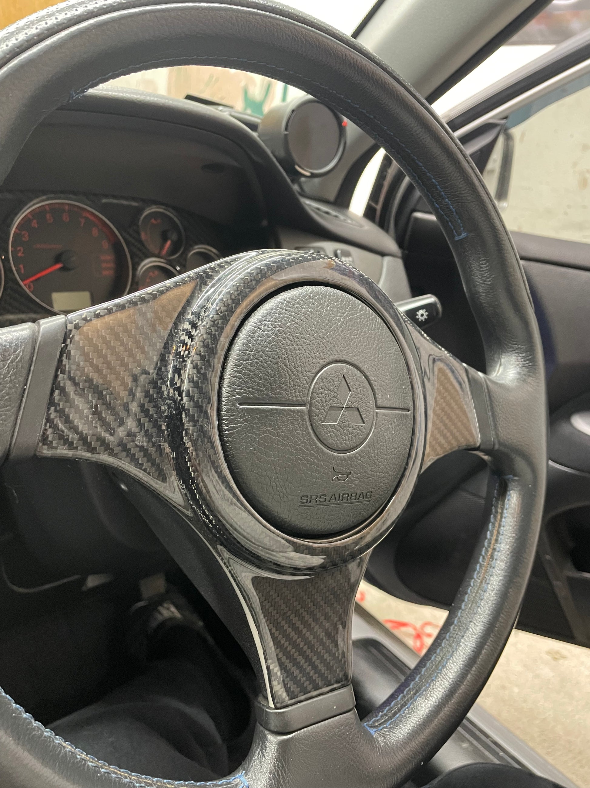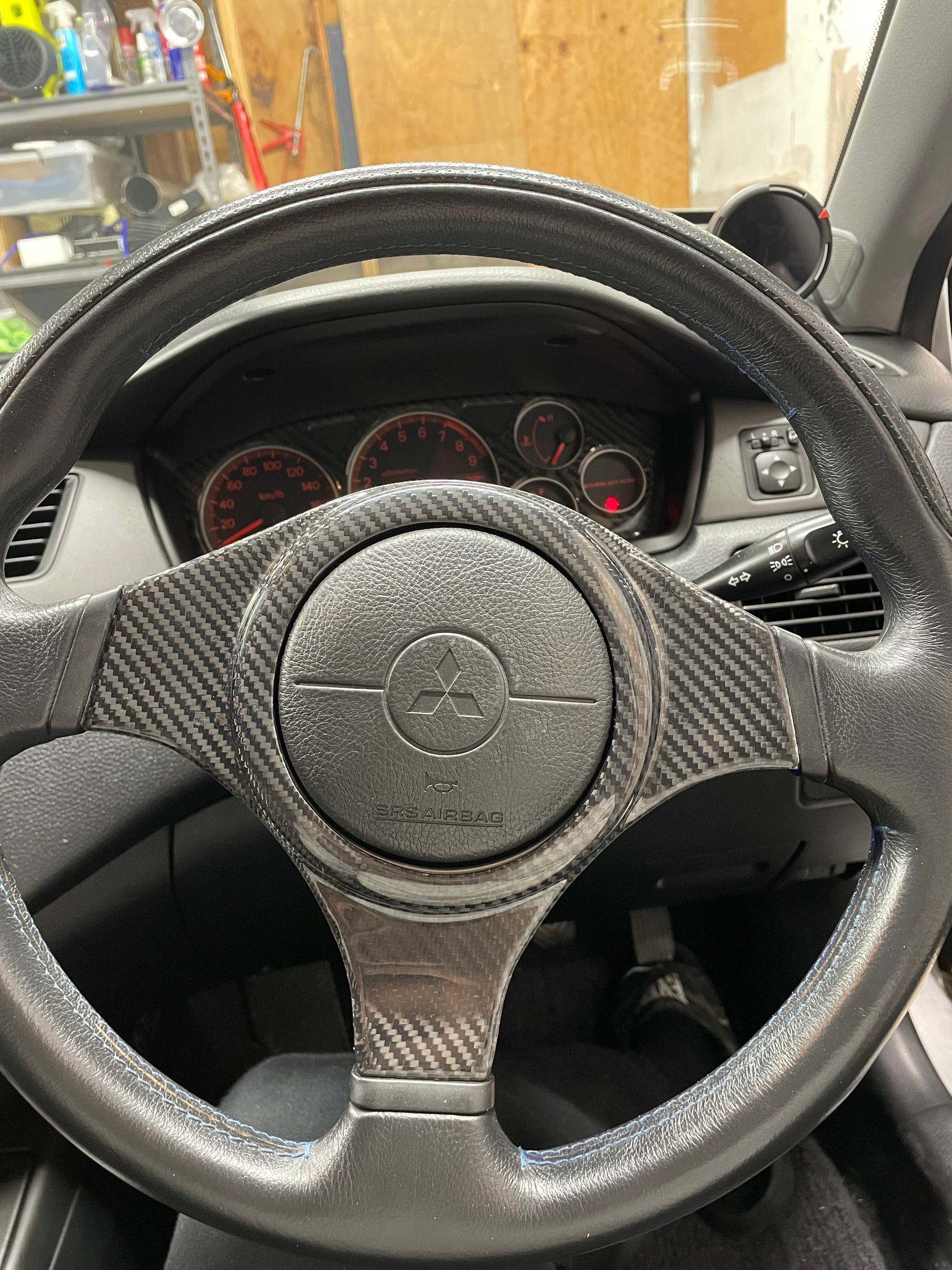 Looking to upgrade the looks of the interior on your Mitsubishi Evo? These carbon fiber steering wheel faceplates are the perfect way to do so. They liven it up without being too flashy or over the top, and look OEM - especially in the Evo 9s with all of their factory carbon accents. These specific covers are made from genuine carbon fiber.
