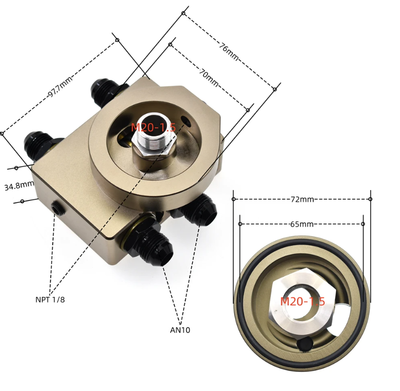 Are you looking for a solution to remote-mount the oil filter in your car and potentially add an external oil cooler? Look no further! These specific adapters had reliability and quality in mind for their production. They contain two 1/8NPT side-ports to allow mounting of pressure and temperature sensors, and utilise AN10 ports to ensure sufficient flow to your oil lines.