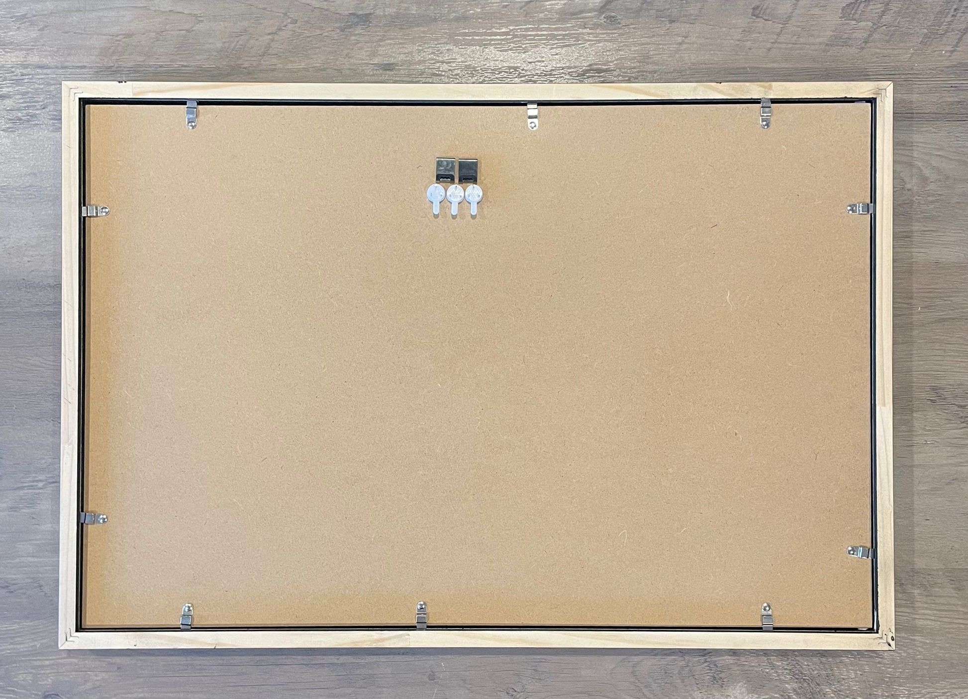 These vinyl frames have a high-quality wooden outer frame, with a laser cut inner sheet to make placing and lining up your vinyls easy. Simply use the supplied thumb-tac, to create a small hole in the inner sheet where you would like to put your vinyl, and use the supplied flare-nail to hold the vinyl in place (this slots through the hole in the middle of the vinyl record already, so it doesn't damage it). You then secure your vinyl cover with the supplied adhesive backing dots.